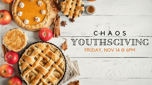 Come join us for YouthsGiving — a special night where we slow down, gather around the table, and give thanks together. We’ll share a delicious meal, connect as a community, and reflect on God’s faithfulness in our lives.